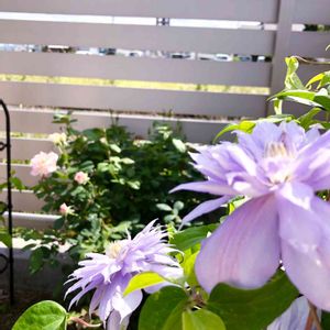 去年の春に鉢植えでお迎えしたクレマチスと、同じく新苗だったフロリバンダ💐購入から、仲良く一緒に庭の一角に同居😊 一年でとっても大きく✨フロリバンダは、まだ花が付き始めたばかりで、クレマチスは満開…というか、花いっぱいで重そうだけど💧 2年目記念&コンテスト対象なので投稿😊