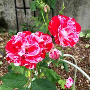 また食べられてるつぼみ😂 スプレーで効かず、オルトランを株元に。でもやっぱり何故か毎年、このバラが蕾を食べられてしまうんです😱植えてある場所もあるのかな🤔 でも2本のたくましいベーサルシュート🌱🌱 これを見たら虫のこと、少し許せました😅🐛 これは親株のパーマネントウェーブで、鉢植えの方はつぼみがたくさん。無事です😅