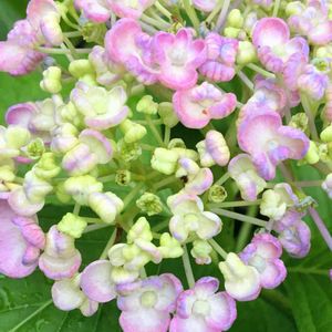 おはようございます。 まるまった花びらがキュートな ウズアジサイ(渦紫陽花)💠 別名 オタフクアジサイ(お多福紫陽花)が咲いていました! 通常ブルーのようですが、ピンク色に咲かせたものは、おかめ(梅花咲き)と呼ばれてたみたい。 おかめにお多福ってなんだか親しみ湧きます〜😁✨