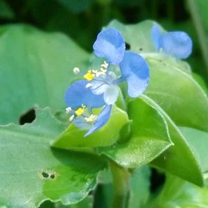 「大きくなりたかった⁉️」 撮影📱2025.7.20 おはようございます😀 熊本市・上江津湖の 芭蕉園湧水池で撮影📱 葉っぱ🌿よりも小さい マルバツユクサ🌼 仲良く並んで肩車😀 小さい❗小さい❗と 連呼されてるけん 大きくなりたかった⁉️ 実際の大きさは… 一輪は普通のツユクサ🌼 半分しかないんよ🤗 肩車したこの姿で ツユクサ🌼と同じになる 大きくなりたかった⁉️ 可愛すぎる~🎵🤗
