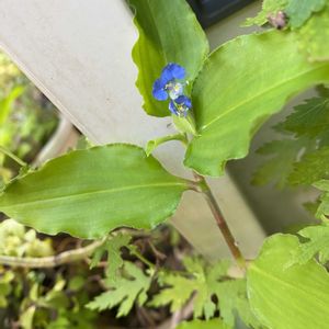 マルバツユクサ 丸葉露草 いつの間にかブラキカムの鉢から登場!本日開花🩵🩵🩵🩵🩵 お花は1cm位しかありません こんなに小さかったかしら?