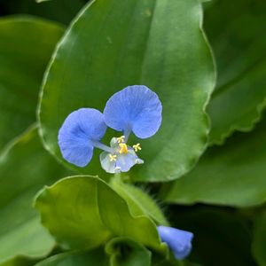 今年も咲いていました𓂃 𓈒𓏸𓍯 近くの道脇に… マルバツユクサ💙✨ 名前の通り 葉っぱが丸っこいです♡ ツユクサより小さめの 淡い色の花が 1つの苞から2つ咲いてます。ஐ⋆*