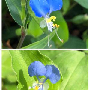 おはようございます😃 これよく見ると👀ツユクサの花に見えますけど、、同じ所に二つ咲くとは! 名前教えてください。
