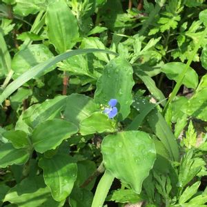 トキワツユクサでもムラサキツユクサでもない普通のツユクサ…と思いきや マルバツユクサ 久々に見たかも 藍花、月草、蛍草、鴨跖草(つきくさ)、青花、帽子花、移草 風情のある別名の多い花ですね