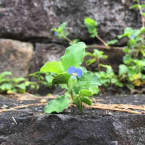マルバツユクサ いつも行くマッサージのお店の庭にたくさん生えていましたが、お花が咲いていました。 お花を見てやっとツユクサとわかりました。 丸い葉に小さなお花です。