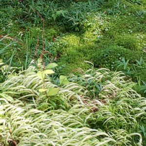 苔むす庭💚に咲いていた~風になびく爽やかな風知草(フウチソウ)✨