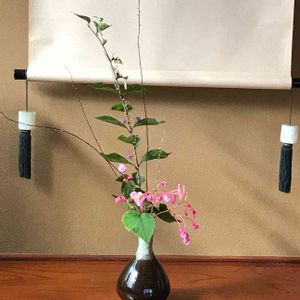 庭の草花を飾りました。 小紫 (扱っている間に、実がだいぶ落ち てしまいました😣) 水引 銀水引 秋海棠