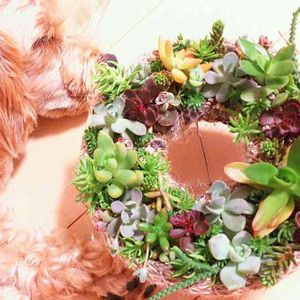 前pic右下の寄せ植えをバラして セダムさん達とリースに寄せてみた🌱 ちなみにこのリース型は 百均のザル(笑) 早く根付きますよう(ㅅ˘︶˘)♡*。+