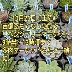 連絡抜けていました!!すいません! 明日、10月26日(土曜)吉備路もてなしの館でフリマします。 RSKばら園でのフリマは2度にわたり雨で中止に。 今度こそ雨になりませんように(祈) ごろ太さんと白神さんの多肉マーケットさんとご一緒させていただきます🎵 楽しみです‼️