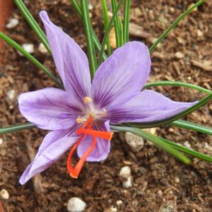 2020,11,22 8:37撮影 最近🐕の散歩コースを🐕が決めるので 久しぶりの隣街の花壇 茎が短い花、クロッカスが咲いてる 初めて見た💜 投稿の写真で見ると赤茶色の蕊 サフランに似てる。 調べるとサフランはクロッカス属(サフラン属) クロッカスの花は上向きに開花 赤い蕊はない サフランの花は花柱が3本もあるので乾燥させると3本のサフランが取れる。 スーパーではサフランは0.4gで600円もする。 以前チュニジアで68㎤で1000〜2000円位で買ったことがある。まだ大事に置いているけど血流改善効果や鬱や不安を改善し、記憶力が良くなる効果があるそう。 高いだけではないんだね サフランの蕊の摘み取りは一年で48時間だけしかなく10gのサフランを取るには、1500本もの花が必要で全て手作業でおこなわれている。 そのため世界一高い香辛料と言われている