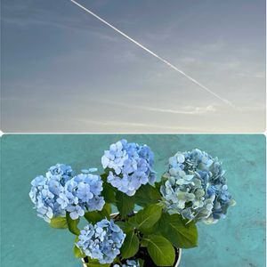 2025年 6月 25日(木) 4時 28分〜 撮影 昨日 撮影 夜勤からの 朝活🌞 スーッとのびる ひこうき雲*⋆✈ 先月 息子くんから頂いた紫陽花 🌿 ラピスラズリ 🌿 そっと鉢増し゚・*:.。❁🪴 ☺︎︎︎︎