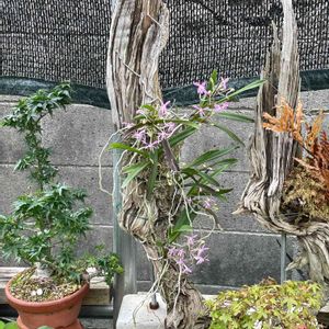 アスコフィネチアが咲き揃いそう🌸 去年、流木に付けて今年はがっつり根もはって活着しました。 冬も外でそのまま。強いなぁ〜✨