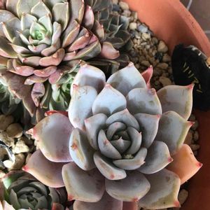☆この半年とても満足してくれたエケベリア交配種トップ3★ 三位ラブリーローズ 例えうちの環境では全然紅葉してくれなくとも やはりこの形が狂おしい程好き! (でも最近なぜか葉挿しの方がもっとローズっぼい 二位ルシラ リラシナのような葉縁はサーモンピンクやオレンジになったりします、素敵です (粉拭うったらもっといい色になれます リラシナの美しさとラウィの粉肌を同時に楽しめるいい交配種です でも成長速度はかなり遅いです... ※追記 ルシラじゃないぞ! ☆一位☆キュービックフロスト うちの紅葉しにくい環境でもいつもいい色してくれた有難い多肉です! (最近曇り続いてるから写真は少し地味になった 親はトップシータービーとトップシーデビーらしい (どっかで聞いた話ですが) 多分スノーエンジェルのように親の品種ともう一度交配する産物 或いは別の場合 すごいな こんなに綺麗なのにとても安い(・~・;) スノーバニー入れ忘れた(・~・;) 濃い粉の下で実は赤黄緑紫色になったりする不思議の多肉 成長点はたまに紫になる 外側の葉っぱは黄色で爪から少々赤色が混じる でも成長速度の遅さはルシナよりひどいです 親はラウィとアルビカンス/ケッセルリンギアナのようです やはりラウィの交配種多いな~