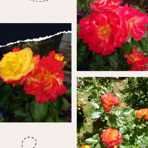 月曜日にはバラを🌹 タグ付けさせて下さいね🏷 バラ🌹 “絵日傘” 黄色の花が日差しを受けると赤やオレンジに変わる多色咲きです。 花の咲き始めは、黄色に外側にうっすらと朱赤がのっています。 咲き進むにつれ赤みが広がります。 日差し、気温、日照量により花色の変化が違います。 この色が変わる系統の中では一番鮮やかだそうです。 作られた時の名前は、“ひらかたルンバ”だったそうですが、 数年間発売されず、 世に出た時は1974年に“絵日傘”として販売されました。 おもしろいですね😆
