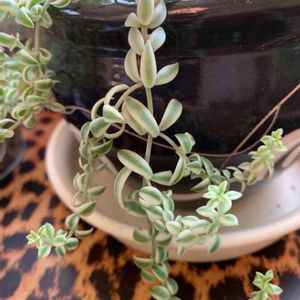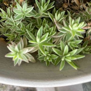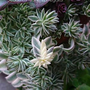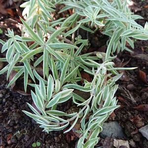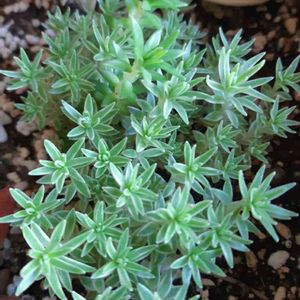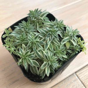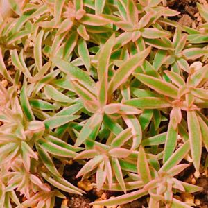 ベンケイソウ科 セダム属 覆輪万年草(姫笹)😻😻 まだまだ小さい苗ですが、頑張って出てきてます。😁 白い葉の子もいて、可愛らしいです。😆