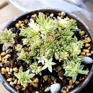 ドラゴンズブラッドの前にお迎えしてたセダム属とセダムとして扱われやすいクラッスラ属の子達。 名札が無かったんだけど、12時の方向から斑入り丸葉万年草?3時は笹姫?6時はリトルミッシー?9時にレモータかな??と思ってます、あってるのかな~~~(;・∀・)
