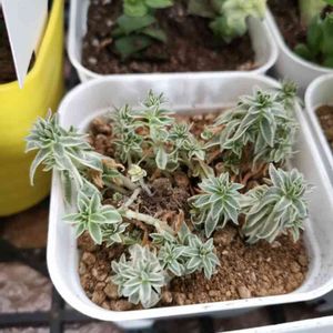 オベサの中央の芽が出始めたー! 寝坊ですな 起きたからよし 今日はちょっと太陽が出てるから今のうちに色々当てたり干したりして仕事行かないと! 昨日の覆輪万年草とコーカサスキリンソウもシャキッとし始めた