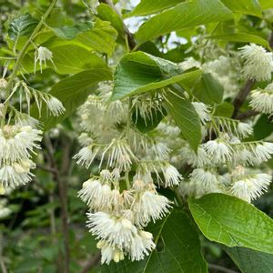麻殻 エゴノキ科 山に自生しています。房状の白い花が大変綺麗です。 葉っぱが大きい大葉麻殻