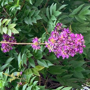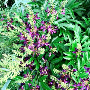 昨夜投稿した紫色のお花を咲かせる樹木。 この木の名前が分かりません💦 アピオス、ハギ、マメハギと色々と回答をいただいたのですが、少し違うかなぁ。と・・・ お花のアップは前投稿にあります。 低木でやや大きめの鉢植えに、横に広がるように枝を伸ばし花が咲いていました🌼 2018.8.4 都立水元公園にて📷