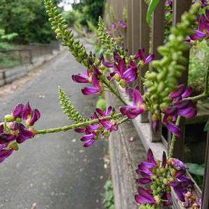 •タイワンサッコウフジ/ムラサキナツフジ 水やりしてるとお掃除のお姉さんがやって来て、この花の名前を訊いたので「🐛魔貫光殺砲(マカンコウサッポウ)です!」と言ってしまった。 自身がノーモーションで必殺技を出してしまった事に気づいた時、恥ずかしさのあまり吐きそうになってもはやその後の記憶がない。 あのお姉さんには危険なナメック星人だと思われている事だろう。 私は貝になりたい。