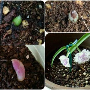 今日のお花シラン🌱やっと芽が出て来ました 嬉しいな💕 羽蝶蘭は7月に写しました🌱