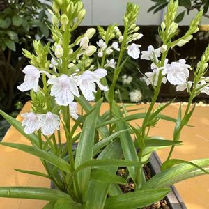 ネギ苗プランタ〜 に 突如咲き出した 高さ8cmほど の 蘭 蘭 蘭 ❓