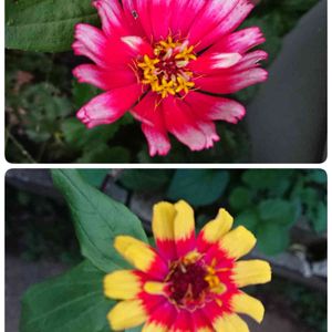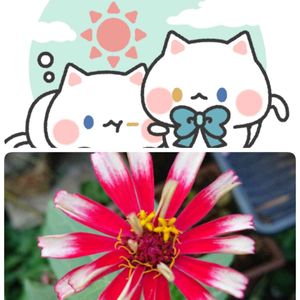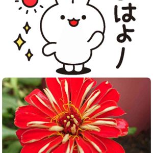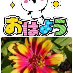 『百日草』 2色咲きの百日草2種類‼️ イラストのおはようとか 入れずに💠を2輪にして見ました‼️ おはようございます☀️✌️ 寒く頭の回転がより何時もより 回転しません‼️😅 今日も元気に楽しく 過ごしてくださいね👍