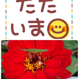 『百日草』 ただいま😃🏠✨ 帰宅したら百日草とバッタが お出迎えしてくれました✌️ 他にいないんかい~~~😭 遊んでいたのでは ありません(@_@)……… 急いで御飯の支度を しなくっては💨💨💨 家事頑張ります💪💪💪