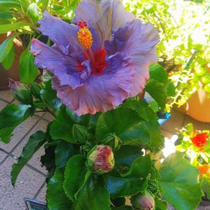 🌺ハイビスカスデニムブルー🌺 大きくて存在感抜群です。 今は少し休憩してるみたいです。また咲くかな?