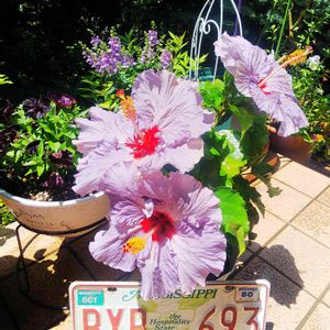 💙ハイビスカスデニムブルー💙 夏の花とはいえ、あまり暑すぎるのは良くないとのことで、軒下に移動させていました。 その効果か? また咲いてくれました!
