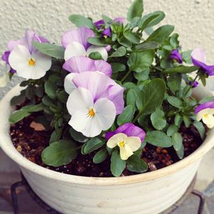 💮ビオラ💮 朝食前にビオラを植え付けました。 お花をカットして、カワイイな〜💞って見ながらのコーヒー☕ 今日は午前中に宿根草の植え付けもやっちゃいます! 頑張ろう😊