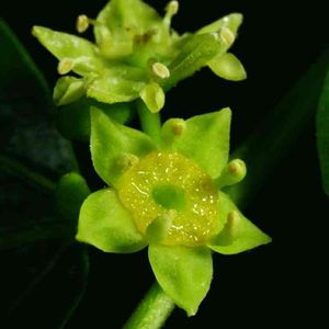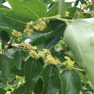 10月14日 今日のお花 🌿🌿💛🤎 ナツメ 🤎💛🌿🌿 和名は夏に入って芽が出ることに由来する。中国植物名は、棗という。英語ではjujube またはChinese dateという。 果実は乾燥させたり、菓子材料として食用にされ、また生薬としても用いられる。 ①6月にライトグリーンのとても小さな花が咲きました。(自宅にて) ②③④⑤小さな花壇に咲いているナツメの木の花と実です。