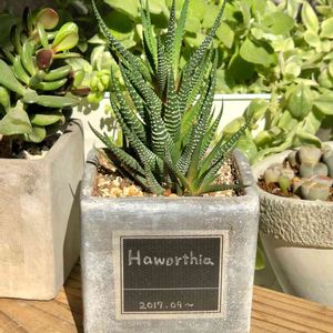 シュッとしてて、カッコイイ(*'▽'*)💕 ぱっと見で、メイン・サブ・チビ×3〜4が詰まってます😆✨ この子はハオルチア・鶴の城と書かれていましたが、周りには似てるのに名前が違う子も沢山いました。 模様の大きさとか個体差の違いかと思いきや、種類が違うんですね〜。