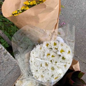 スプレーマム 15本100円 白ギク 3本100円 小菊の黄色 10本150円 ドラセナ 5本150円 安かったので買っちゃいました。 生けるの大変。。