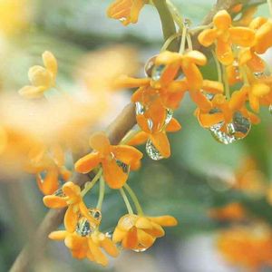 雨上がりの朝、庭いっぱいに香が広がります。 地味ですが存在感のある花、金木犀✨