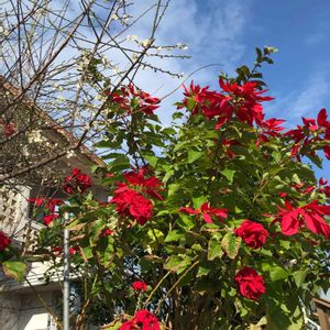 今日は真っ赤諦めていましたが、午後の出先で、 ❤️ポインセチア2種と、💠白梅の花の共演and青い空 ミスマッチな取り合わせが沖縄かな😉 🏷真っ赤な火曜日 🏷半分そら 参加します😊❤️💙 2022.1.25 沖縄県西原町小那覇にて 銀行の駐車場に顔を向けて元気いっぱい咲き誇ってました。 車内温度22℃ 陽射しが強い午後でした。
