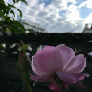 🏷土曜はお空の発表会 🏷半分そら 参加します。 🌹島バラ(庚申薔薇コウシンバラ) うちの島バラは庭の東に植えているので、ほぼ うなじを見せて咲きます。 バラは後ろ姿も綺麗でまるでハスの花のようです。それって褒めてないかなぁ😉 2022/2/11 沖縄県那覇市首里にて