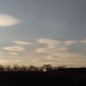 2022.2.12. 17:01 すみません もう一枚 肉眼ではもっとくっきり色が見えていたのに スマホの限界… 左の上の方の雲にも色が出て 彩雲になっていたのですが この画像では厳しいですね 幻日は長い時間見えていたので 写真撮り過ぎました😅 p