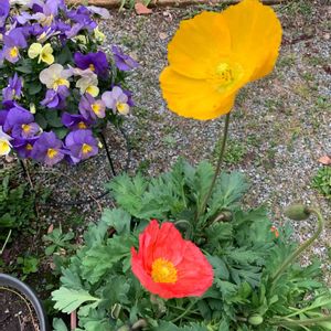 埋もれていて 小さな鉢に植え替えたチューリップは、 チューリップの見本🌷のような きれいなつぼみ 黄色の八重は、ずっと咲き続けてる先輩