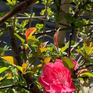 すこしピンクが濃くなってきた 枝が伸びすぎ? 去年とはまた印象の違う旭山桜 どうお世話したらいいでしょう? どなたか アドバイスなど いただけたらうれしいです m(._.)m