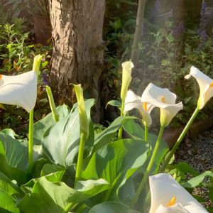 白いクリスマスローズの株の下 紫の小人さんたちが 寄りそって ひそひそ話してるみたい * *