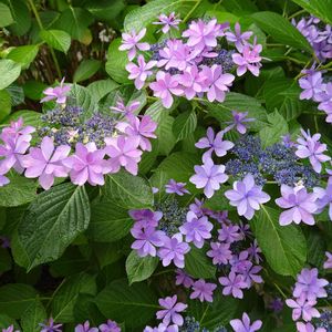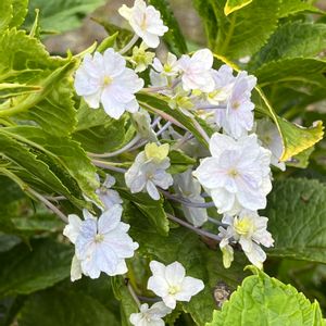 ガクアジサイの方の花です。 周りの花は一重ではなく二重で素敵♪😍 真ん中の小さな花は凄く薄いブルーになって来ました。 これはもしや、素敵な品種なのでは?🙄 全体が咲くのが楽しみです! ※隅田の花火と教えて頂きました♪😆 検索して見たら間違いない様で嬉しいです。