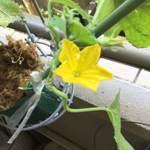 こんなに小さいのに下の方だけプックリとしています。。どうも今年のキュウリは長さが足りず太り気味なんですよ。 大分目立つ様になってきたので、ヒヨドリ対策で、収穫してしまいました。2日程前にもヒヨドリが下見(?)にきてましたし。 なかなか理想的な大きさにはなりません。何がいけないのでしょうか?