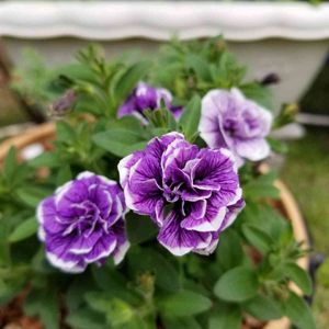 今日のお花 ペチュニア トパーズブルー💜💜 一緒に寄せた 花かんざしは 全く見えなくなってしまいましたが、 お気に入り😍です