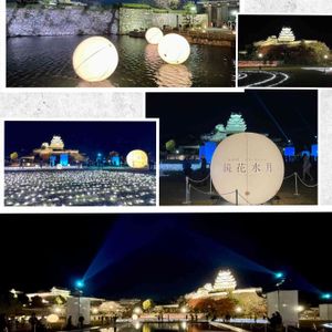 姫路城『鏡花水月』 三の丸広場を舞台に光と水と音楽のライトアップイベントを開催しています 正面でのお城が水に映りとても綺麗でした(11日迄) 2日3日と沢山の人出で賑やかでした✨✨🌠✨🏯✨🌠✨✨