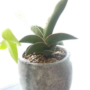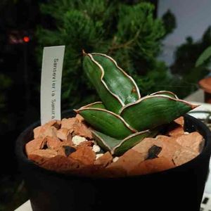 今日お迎えした小ぶりのサンスベリア、肉厚です。 札にサンスベリアとしか書いてないのですが、種類はなんでしょか?教えてください、🙏お願いします🌸
