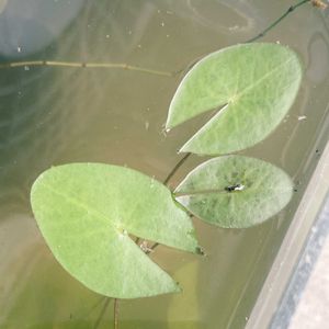今日は薄曇りの空です☁️ スイレンの葉っぱが水面に顔を出しました♪