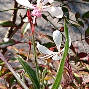 ガウラ・白蝶草🌸💞 庭に濃いピンク、淡いピンク、花びらは白くお尻がビンクがかったの、の3色のガウラが咲いていますが、これはまっ白のガウラではないですか❗❓🤍🤍🤍