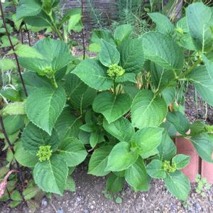 今年我が家の紫陽花💜💙❤️は、 アナベル🤍🤍🤍以外は、 みんな花が咲く気配無し🥲 そんな中 昨年挿し木したばかりの 紫陽花ポージィブーケに 小さな小さなお花みっけ🙌
