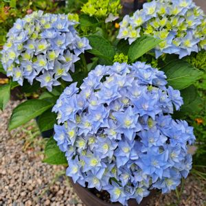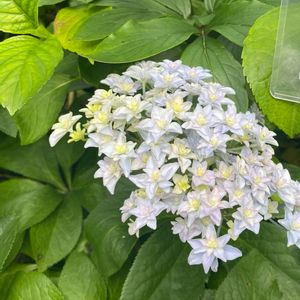 おはようございます⛅ 今年4月に苗を購入したアジサイ「ベガ」💙✨️ 空色のお星さまをいっぱい集めたような素敵なお花が咲きました✧٩(ˊᗜˋ*)و✧ ラベルの写真は空色とピンクが混ざった色のお花だったので、これから色変わりしてくれるともっと嬉しいな~(ღˇᴗˇ)。o♡
